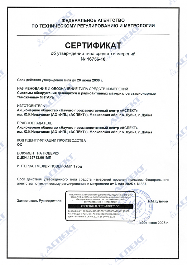 Радиационные мониторы серии «Янтарь» соответствуют требования стандарта ГОСТ и одобрены для использования на объектах ГК «Росатом», Федеральной таможенной службы, Минобороны, ФСБ, МЧС.